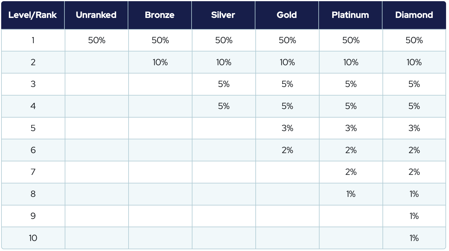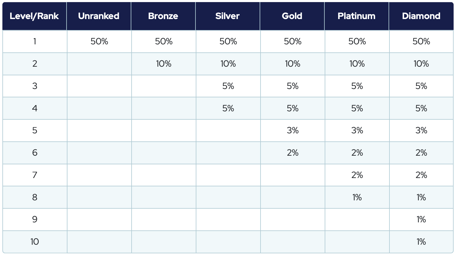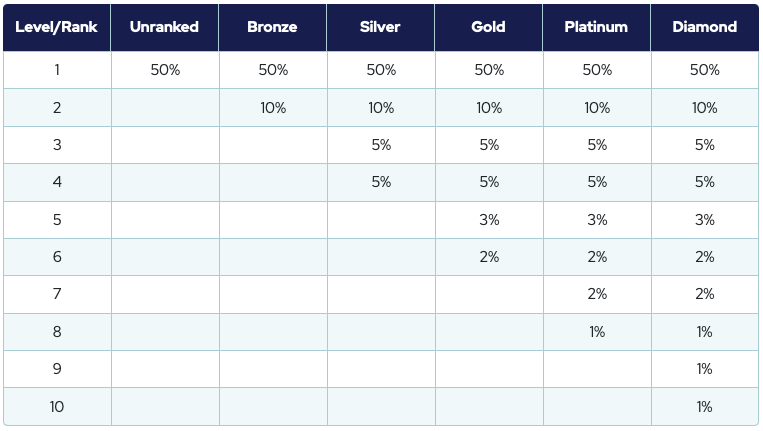 2% sunt îmărțiți de către membrii confirmați la nivel de Diamant.
