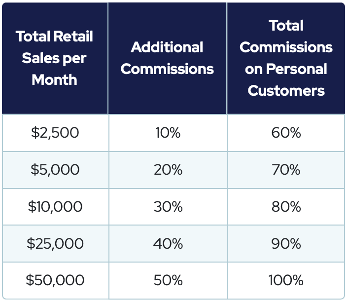 Bonusurile de achiziție de clienți sunt plătite săptămânal cu comisioane de pornire rapidă și comisioane de vânzare cu amănuntul.